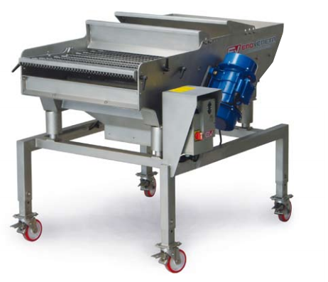 Automatický selekčný stôl pre odstraňovanie lístia, konárov, viničnej révy a stoniek z hrozna a pre jeho triedenie.