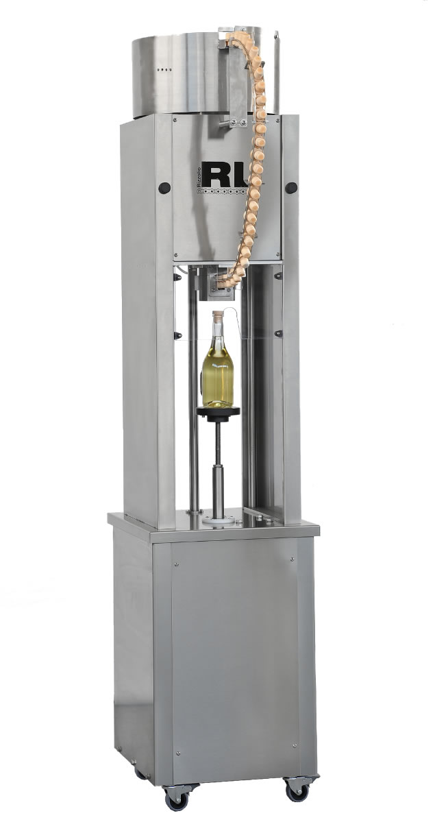Poloautomatický uzatvárací stroj RLP-1 bol navrhnutý na tlakové uzatváranie sklenených fliaš T-uzávermi z korku alebo plastu.
