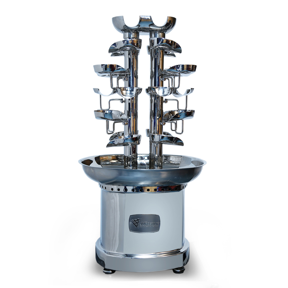 Táto jedinečná fontána s dvoma kaskádami je prvou v kategórii menších fontán. Táto fontána vám pomôže vyhnúť sa výberu medzi štýlovou prezentáciou a zmyslom pre rozmanitosť. Štandardná čokoládová fontána obmedzuje vašich klientov iba na jeden druh čokolády, zatiaľ čo táto dvojitá kaskádová čokoládová fontána ponúka dva druhy čokolády