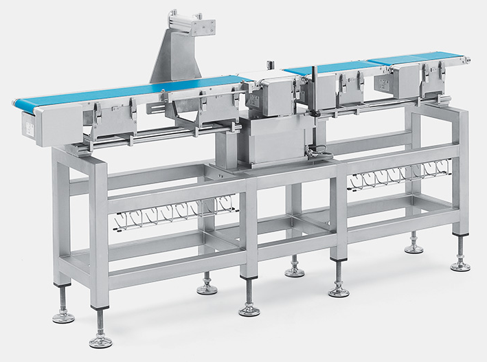• Váha zahŕňa 4 pásy – vstupný pás, separačný pás, pásovú váhu a výstupný pás (s vyraďovaním)