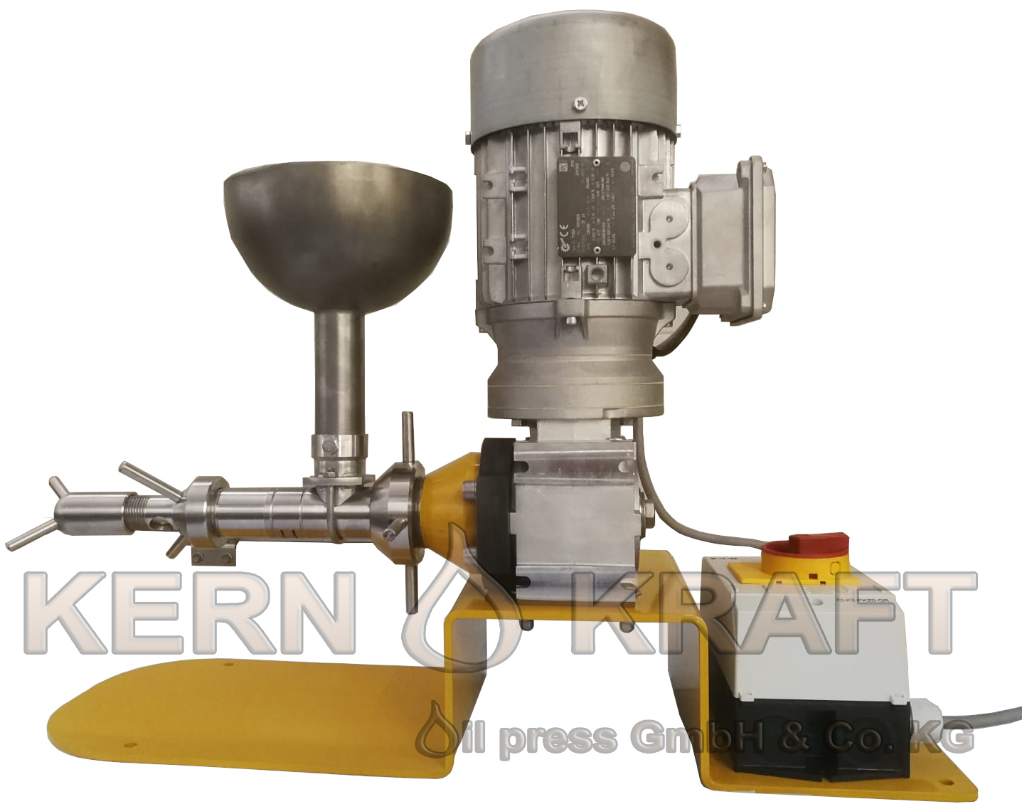 – manuálny lis na olej s nerezovým zásobníkom, motorom a ochranným spínačom motora