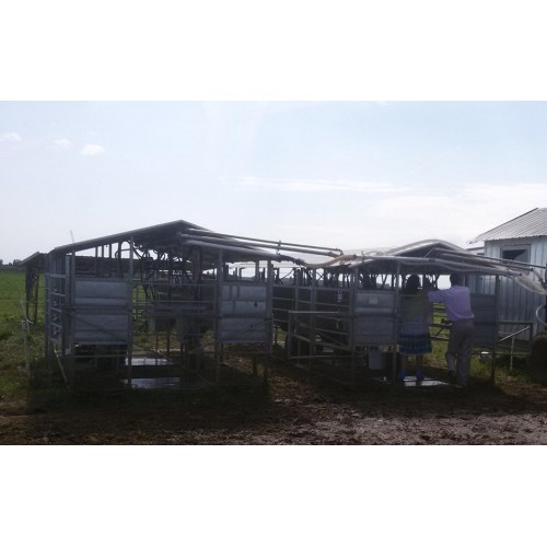 - Systém zaručuje voľný prístup. Zvieratá sú umiestnené rovnobežne s dráhou dojičov, konštrukcia zaisťuje jednoduchú kontrolu nad zvieratami, jasný výhľad na zviera a minimalizuje riziko zranení zvieraťa aj obsluhy