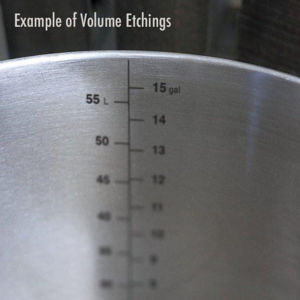 - Vyryté objemové značky (galón/liter)