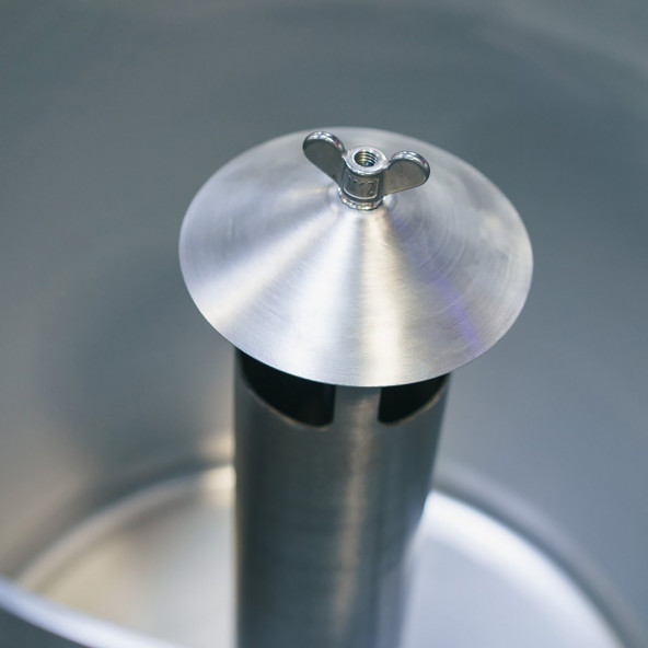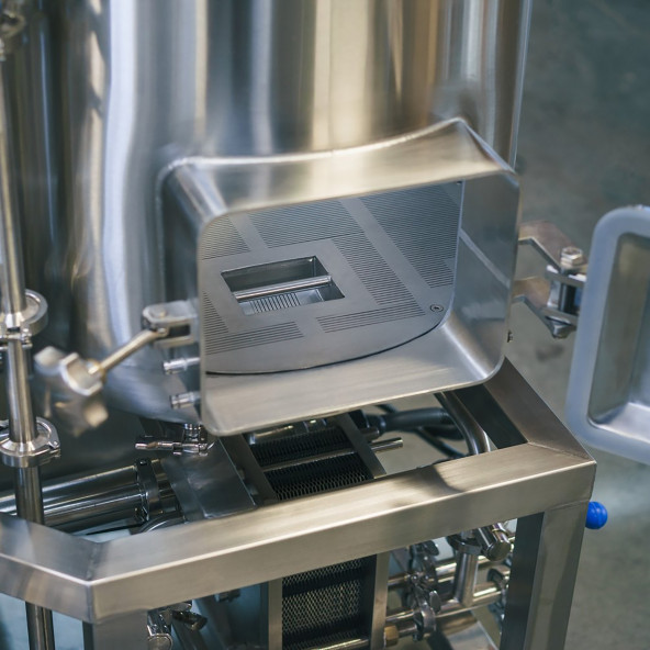V žiadnej z profesionálnych varní Ss Brewtech nenájdete dierované falošné dno, takže ho nenájdete ani v tejto nano varni. Presne vyfrézované falošné dno umožňuje rýchlejší prietok, jasnejší odtok a znižuje riziko zaseknutia hmoty. Dvierka na zrno umožňujú rýchle a jednoduché čistenie. Už žiadne problémy s naberaním obilia z vrchnej časti rmutovacej káde.