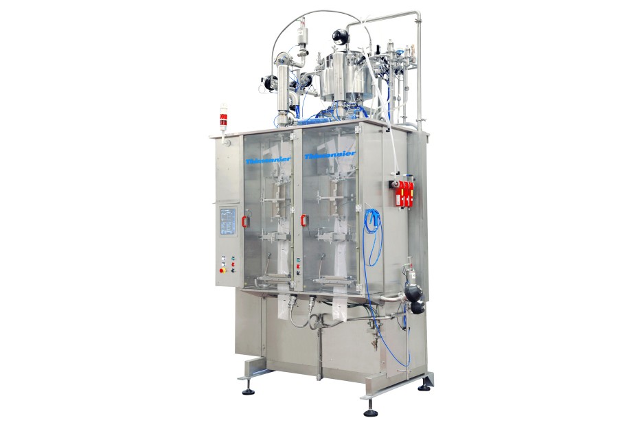 Vertikálny utesňovací a plniaci stroj pre balenie kvapalných a viskóznych produktov do vreciek Pillow Pouch.