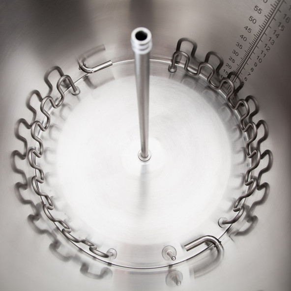 Vysladzovanie prebieha bez rúrok alebo potrubí mimo nádrže. Kropiaca rúrka namontovaná na vonkajšej strane stredovej rúrky nasleduje pri zdvíhaní sladovú rúrku a zároveň zdvíha zariadenie na rozmetanie mladiny. Vďaka tomuto veľmi jednoduchému systému je vysladzovanie z oddelenej nádrže bez zanechania neporiadku.