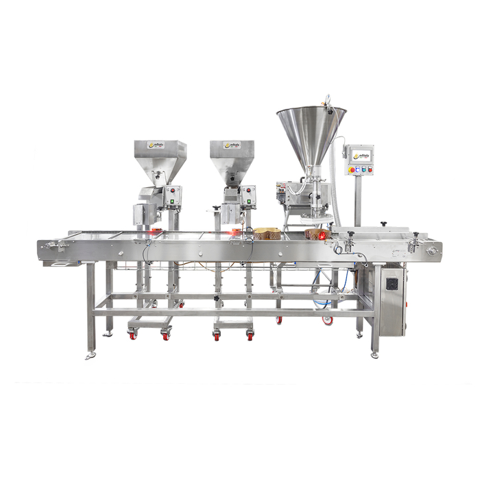 Fáza poťahovania je vybavená špeciálnym pneumatickým čerpadlom, ktoré umožňuje prispôsobenie dávkovania polevy podľa potreby